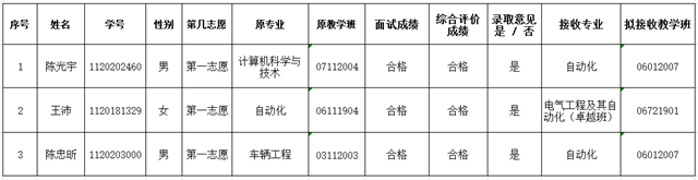 自动化学院2021-2022第一学期转专业正式结果公示 供稿:教学办公室 编辑:王朝阳 审核:王美玲 杨毅 发布日期:2022-03-01 阅读次数: 2022年3月1日,自动化学院转专业工作小组将2021-2022学年第一学期转专业正式结果进行公示如下: