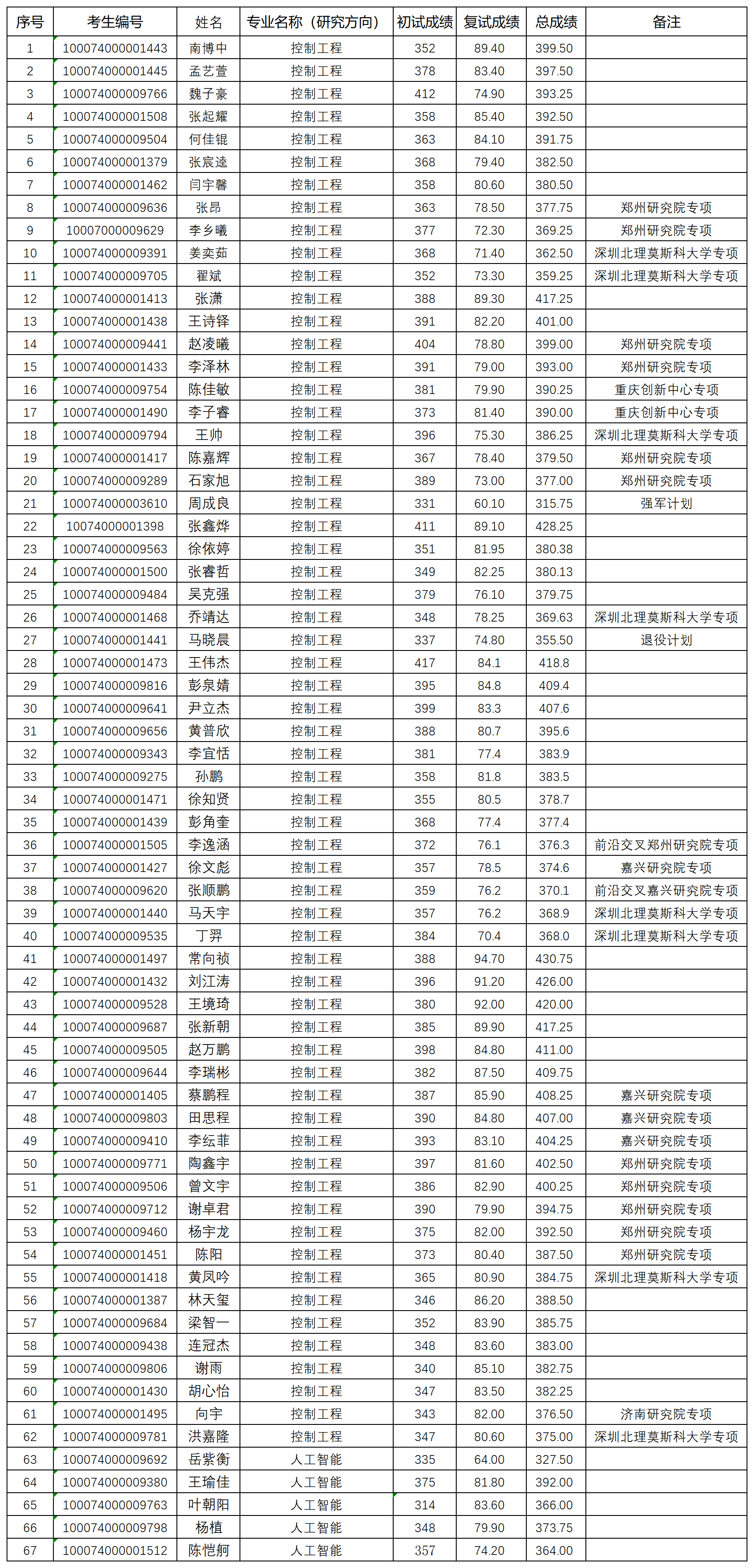 自动化学院2024年研究生入学考试“专业学位”拟录取名单