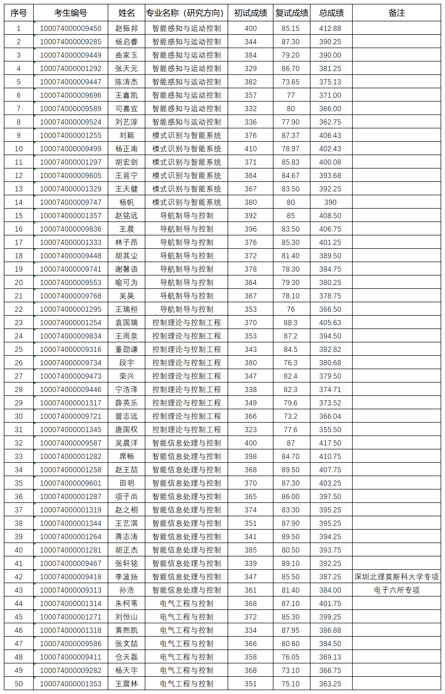 自动化学院2024年研究生入学考试“学术型”拟录取名单