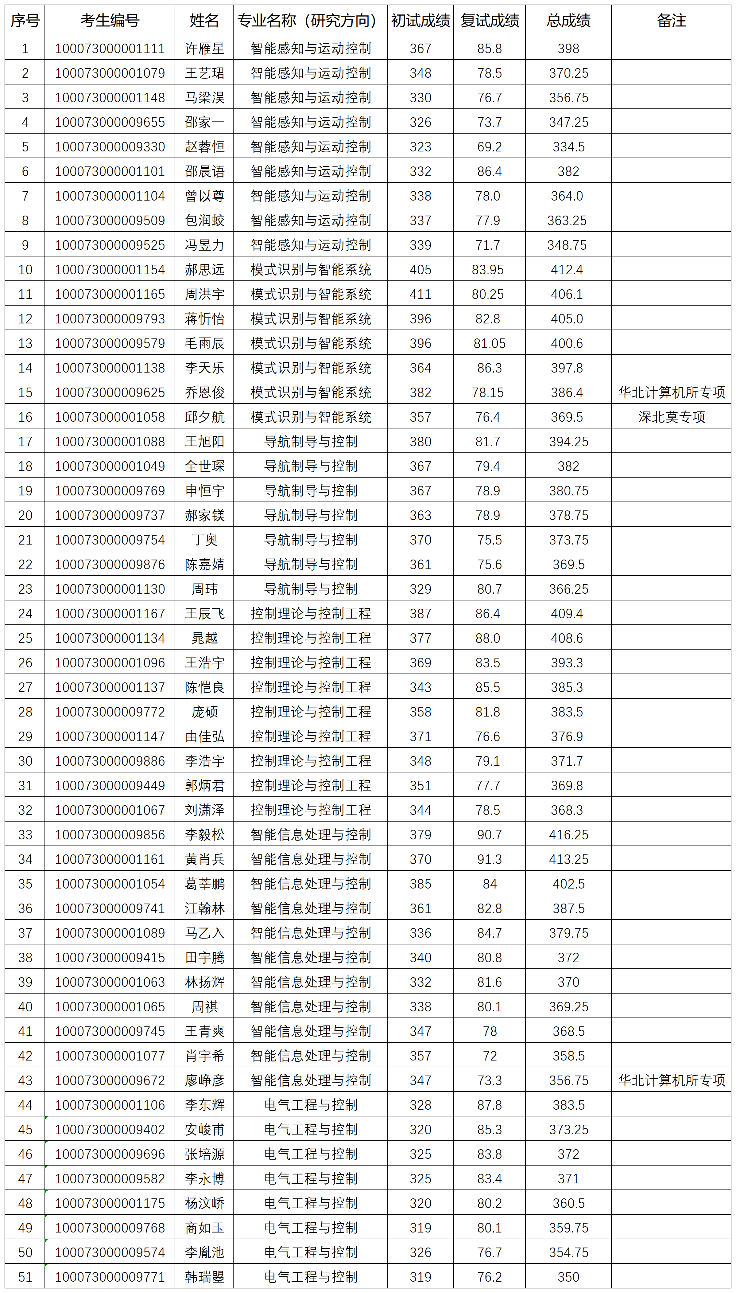 自动化学院2023年研究生入学考试“学术型”拟录取名单