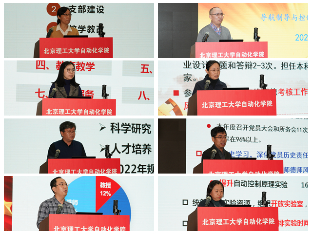 学院8位教工党支部书记、研究所(中心)所长围绕履职情况和特色工作、存在的主要问题及原因、下一步工作思路和主要举措等方面进行了述职,总结了2021年取得的成绩,并对2022年的工作进行了规划。