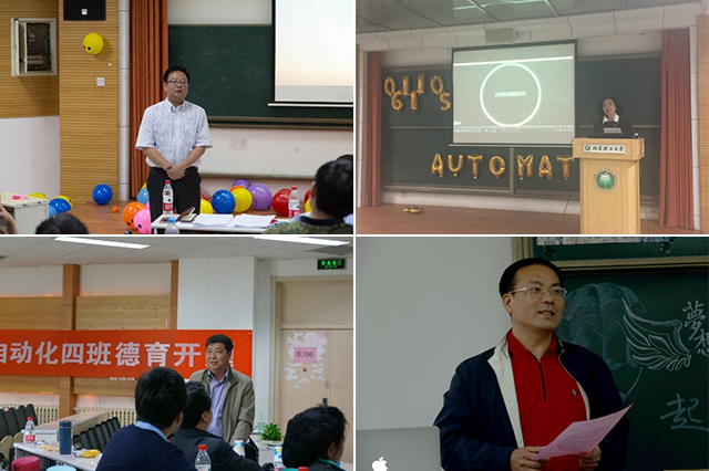 自动化学院党委书记金军、院长王军政分别参加了2015级自动化专业06111503班主题为“梦与路”的德育开题报告会、06111504班主题为“启航·梦想·青春”的德育开题报告会。同学们逐次上台阐述了自己对大学生活的体验与感悟,在总结过去一学期学习生活的同时,认真分析了自身的优缺点,提出了适合自身的目标和计划。金军书记肯定了同学们在入学半年以来的成长与进步,他鼓励同学们多思考,多动脑,培养独立思考能力,珍惜来之不易的大学学习机会,也希望同学内部能够互相帮助,并对大家四年的大学生活给予真诚的祝福。王军政院长向同学们强调了德育开题的意义:德育开题使同学们对大学生活有一个较好的规划和目标,通过目标不断激励自己更好的成长、约束自己不偏离自己的人生目标,并且在今后的大学学习生活中,不断的调整和完善自己的目标与规划,结合后续开展的德育中期检查与德育答辩,组成“闭环”系统,使自己达到预期的“控制目标”。