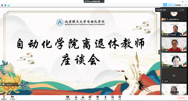 秋高叶落又重阳,桂蕊盈枝朵朵芳。为弘扬学院关心爱护离退休教职工光荣传统,营造尊老敬老的良好风尚,9月28日上午,自动化学院线上召开2022年离退休教师座谈会。学校离退休工作处处长宋希博,离退休教职工党委书记邹锐,自动化学院党委书记王美玲,院长夏元清,副院长张男,副书记、副院长史大威出席会议,学院离退休教师、2022年新入职教师参加座谈会,座谈会由张男主持。