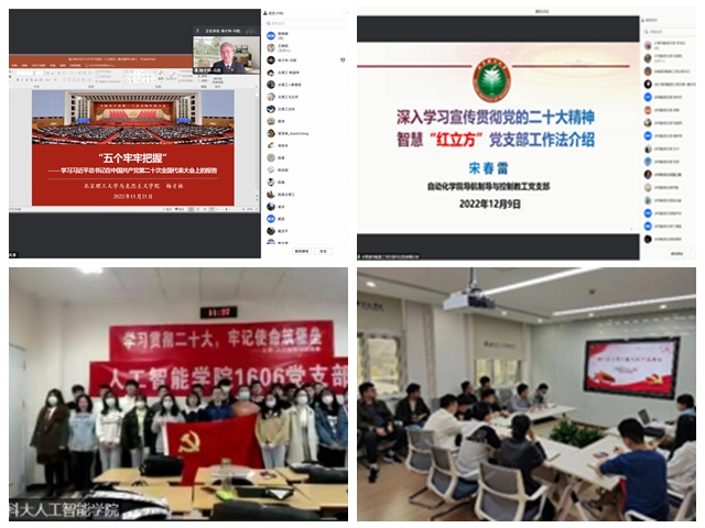 近段时间以来,自动化学院党委扎实推进党的二十大精神学习宣传贯彻工作。制定学院实施方案,从领导干部先学先行、全体师生共谈共学、多维模式同向同行、研究阐释走深走实4个方面统筹推进。开展“喜迎二十大·奋进新征程”主题宣传活动,推出“自控·堡垒”系列报道7期,开展“青春献礼二十大、强国有我新征程”活动23场,组织中心组专题学习3次,开展主题宣讲14场。下一步,学院将把党的二十大决策部署贯彻落实到学院一流学科建设各方面、全过程,推动党的二十大精神落地生根,形成生动实践,以高质量建设的工作成果检验学习宣传贯彻成效。