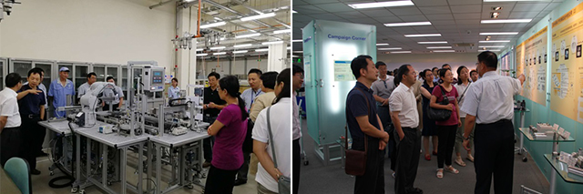 双方举行了“高端流体动力技术研究生实践创新基地”的挂牌仪式,并合影留念。同时北理工自动化学院一行也参观了SMC(中国)有限公司技术中心的研发实验室及全球领先的气动和电子产品的展览室。
