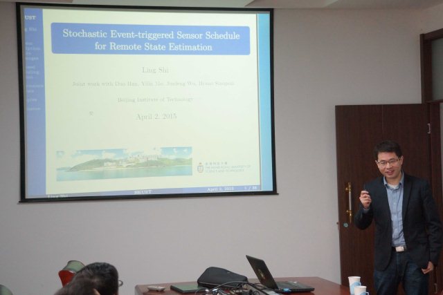 应复杂系统智能控制与决策国家重点实验室、自动化学院王军政教授的邀请,香港科技大学施凌教授于2015年4月2日来到北京理工大学自动化学院进行学术交流,在六号教学楼三层会议室为学院师生做了题为《随机事件驱动传感器调度与远程状态估计》的学术报告,报告会由自动化学院副院长夏元清教授主持。